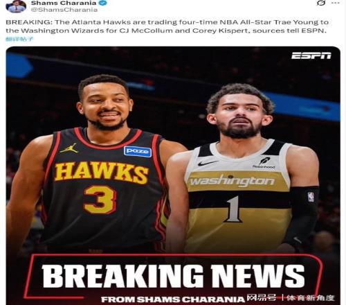 要说交易这事儿,老鹰队那可真是“风风火火闯九州”啊!前天才刚和“杨市长”在办公室门口“谈心”,探讨离队大计呢,今天就像变戏法似的,“嗖”地一下就把人给送走啦!据“小道消息达人”Shams爆料,老鹰和之前眉来眼去好久的奇才队,正式敲定了一笔1换2的大买卖。咱这位四届全明星“杨市长”,这就带着他的天赋,一路“狂飙”到首都华盛顿啦,而老鹰则换来了CJ和基斯珀特这俩“宝贝”。