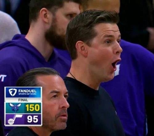 黄蜂在客场150-95锤爆爵士,狂胜55分之多,乃队史最大赢球分差,同时创造NBA史上客场第三大分差,前二是57分和56分(3次)。